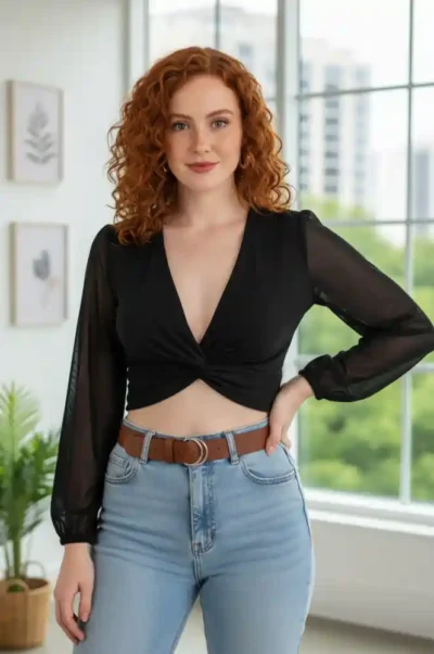 Ideal para combinar con jeans de tiro alto, faldas o pantalones elegantes, la Blusa Nudo con Mangas de Malla es tan versátil como moderna. Una opción que equilibra sensualidad y frescura, pensada para quienes disfrutan expresar seguridad y autenticidad en su look.