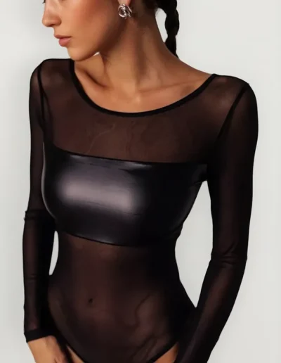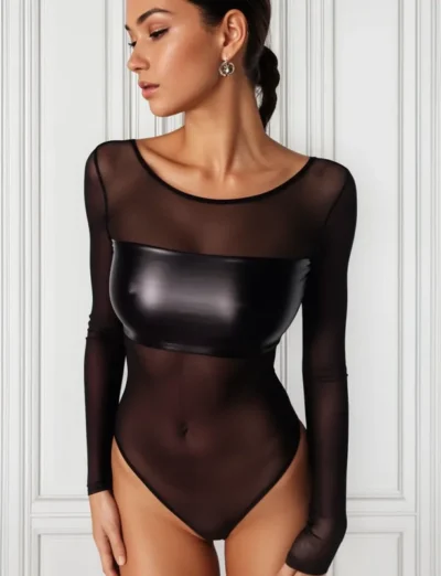 Body Sexy de Malla y Cuero Imitación para Mujer| Título | cantidad | descuento |
