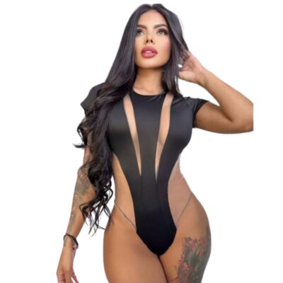 Deslumbra con nuestra blusa body transparente en negro. Su diseño seductor con transparencias estratégicas realza tus curvas y estiliza tu figura, brindándote un look sofisticado y sensual. Fabricada en tela suave y elástica, se adapta cómodamente a cualquier talla. Perfecta para destacar en cualquier ocasión con total elegancia.