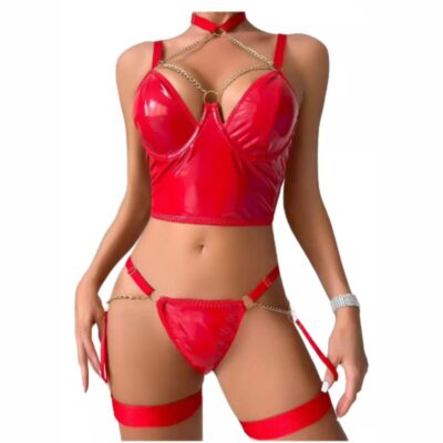 Conjunto Erótico de Charol Rojo con Cadenas – Atrevimiento y EstiloConjunto Erótico de Charol Rojo con Cadenas – Atrevimiento y Estilo