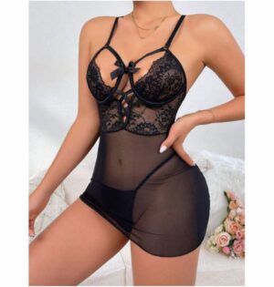 Babydoll Transparente de Encaje con Cintas Cruzadas | Lencería Sexy