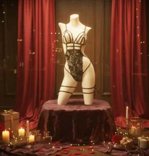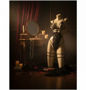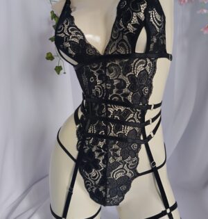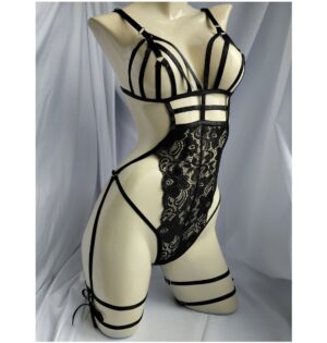 Lencería Femenina Body con Arnés de Encaje Sensual