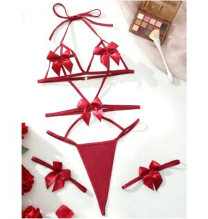 🔥 1 enterizo con tiras, moños decorativos y ligas 💖 Talla: Única graduable (XS a L) 🌈 Colores: Rojo | Blanco | Negro