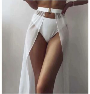 Descubre nuestro pareo largo con cinturón de broche, 🔥 Malla transparente elástica para un ajuste perfecto. 🌈 Ideal para playa, piscina o momentos de relajación, ❤️ Disponible en blanco, negro y rojo.