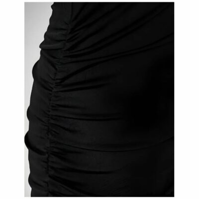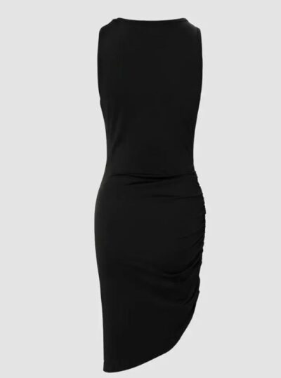 Vestido Negro Ajustado Asimétrico con Detalle Fruncido – Movimiento, Estilo y Elegancia